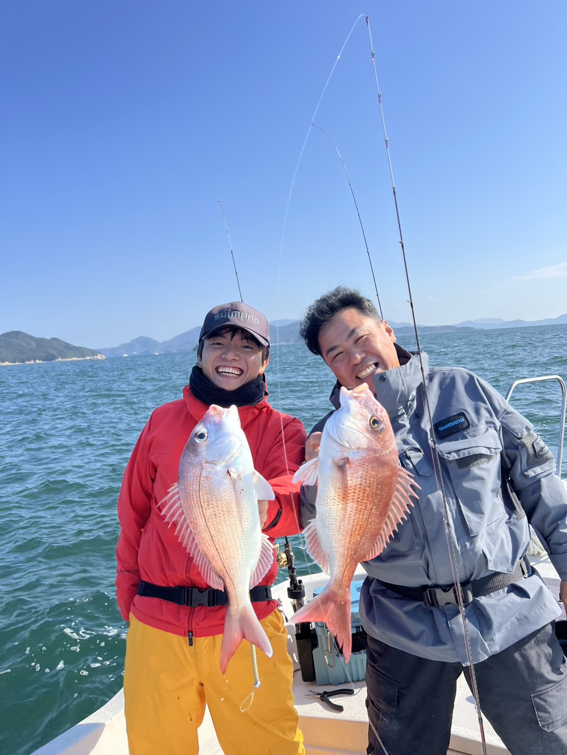 写真には写っていないもう一方、Mさんは顔出しNGでしたが、最大サイズをはじめ、重要なタイミングで確実に釣果を上げていただきました。お二人の笑顔の写真からも、充実した一日だったことが伝わってきます。