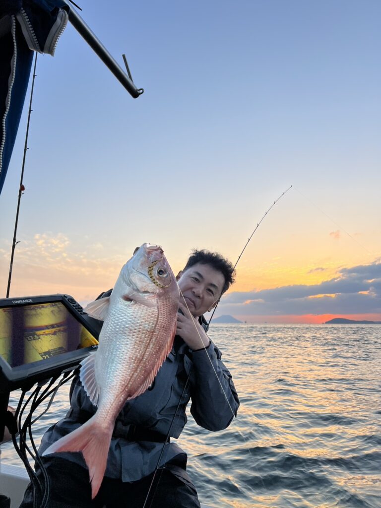 久しぶりの高松沖ということもあり、正直なところ、魚がいる場所を探すのに不安がありました。しかし、お客様3名の釣り技量が非常に高く、ここぞというポイントでしっかりとヒットを出していただけました。
